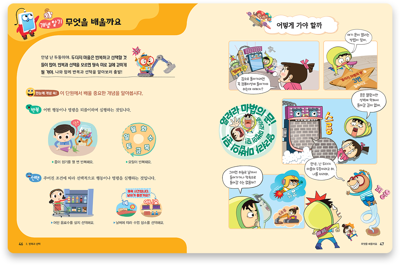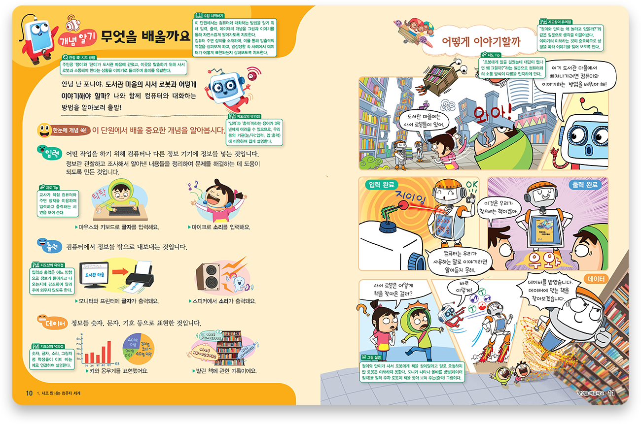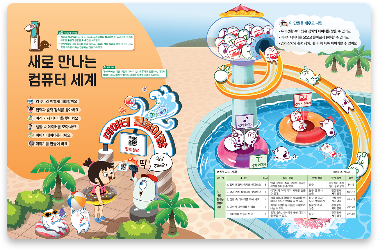단원 핵심 개념을 이야기로 소개하고, 이와 연계된 게임을 통해 핵심 개념에 대한 흥미를 갖도록 하였습니다.