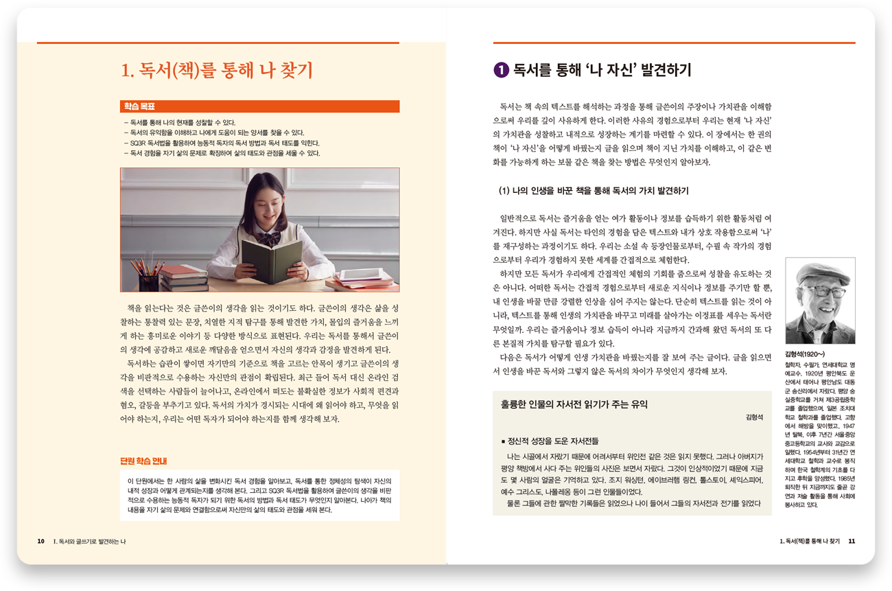 다양한 예제와 제재를 바탕으로 독서와 글쓰기, 예술 활동을 통하여 자신을 찾아가는 자기 주도적 학습이 가능합니다.