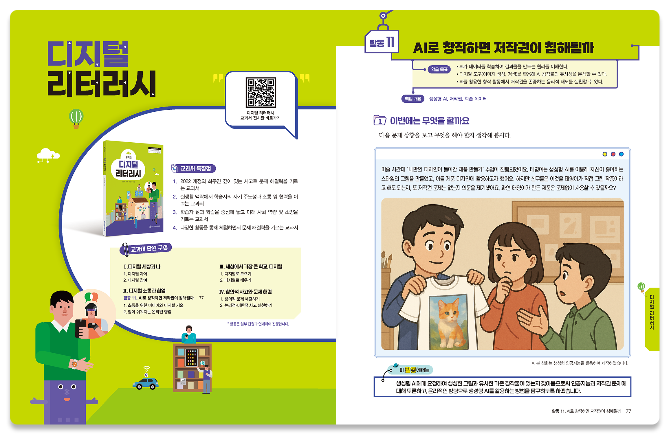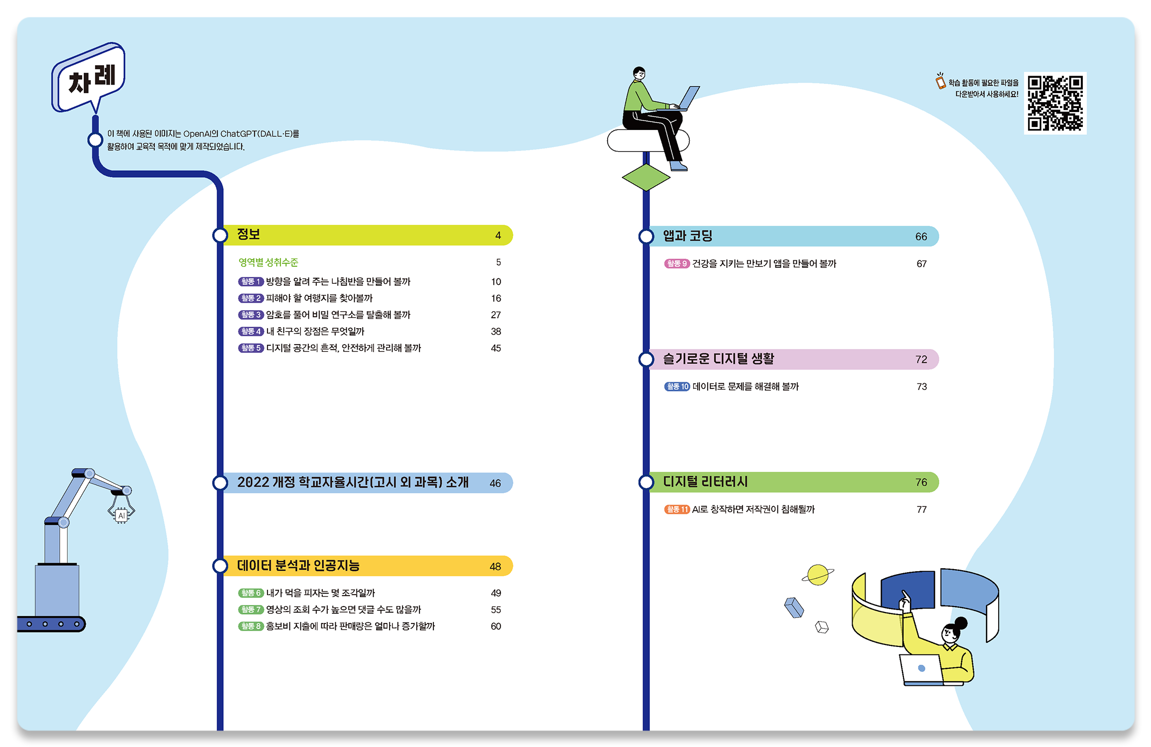 수업 도움 자료 QR코드와 평가 기준표를 제공하여 수업 활용 및 평가 효율성을 높입니다.